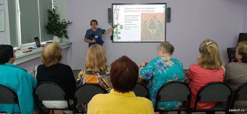 Присутствующие делились воспоминаниями из детства о праздновании Троицы и прослушали духовные песни в исполнении Галины Власовой.