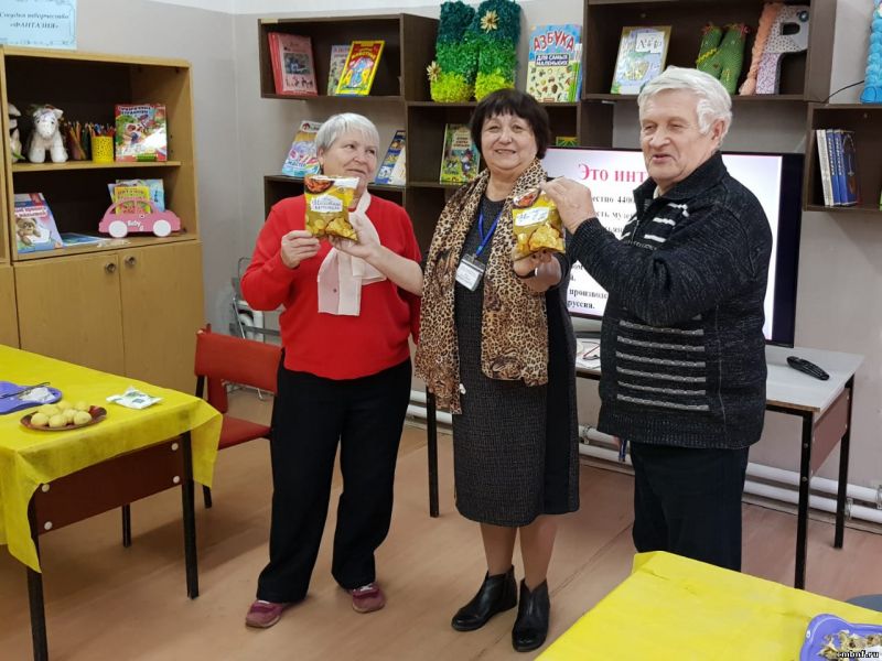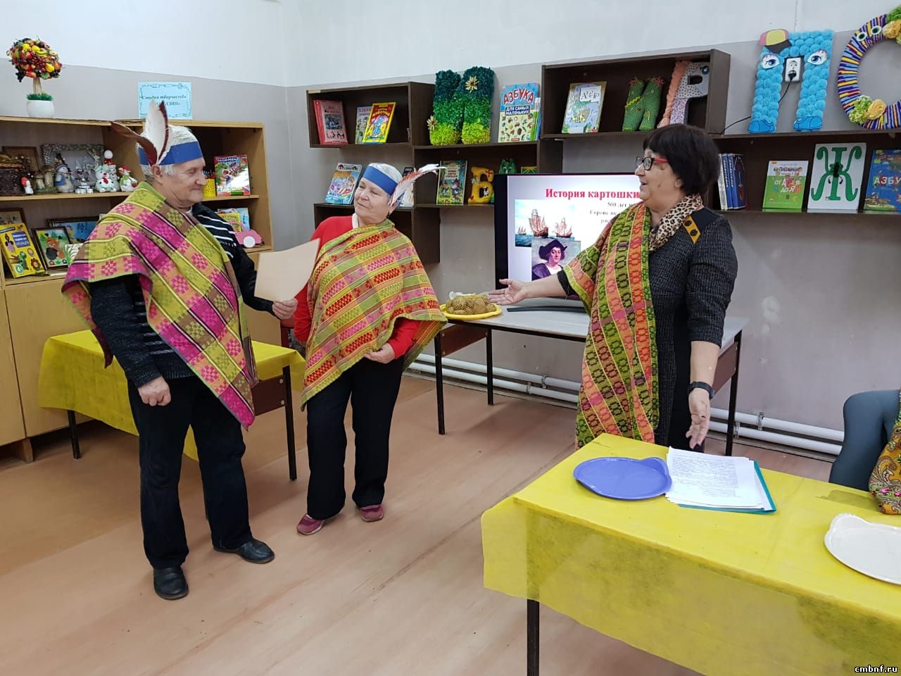 Трудно себе представить, что ещё менее пятисот лет назад ни в Европе, ни в России не знали картофеля, а сегодня его возделывают в более чем 130 странах мира. Библиотекари рассказали присутствующим как, где и откуда появился картофель, поговорили о непростом пути распространения его в Европе и России. Литературный материал дополнялся историческими миниатюрами в исполнении Агапина В.М. и Сахнова Л.А., конкурсами и викториной. Наградой за активность стали «Московские картофельные чипсы». Завершилось мероприятие дегустацией блюд из картофеля и чаепитием.