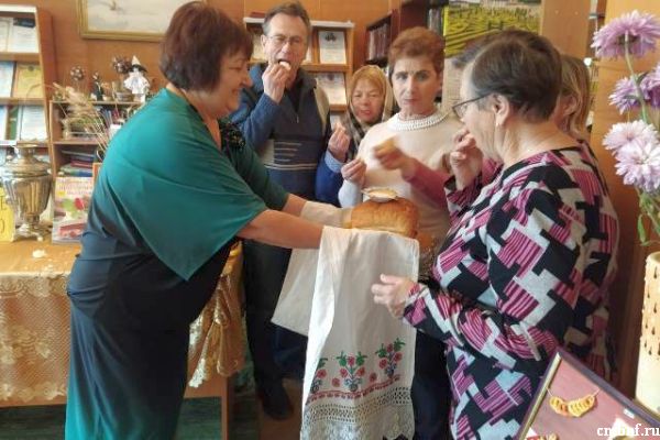 В заключение встречи все сделали общую фотографию и получили от библиотекарей по вкусному и мягкому калачу.
