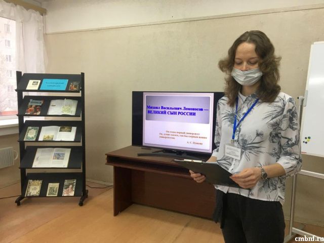 В отделе обслуживания читателей (ул. Латышская,15б) прошёл вечер-портрет «Холмогорский самородок», посвящённый 310-летию со дня рождения М.В. Ломоносова. Жизненный путь русского учёного - сплошная полоса получения знаний, открытий и практических опытов. Кислота, градусник, горизонт, иллюминация, мозаика – все эти термины ввёл в лексикон русского человека Михаил Васильевич. Ломоносов создал химическую лабораторию в Петербурге, раскрыл загадку северного сияния, совершенствовал телескоп, занимался историей и стихосложением.
