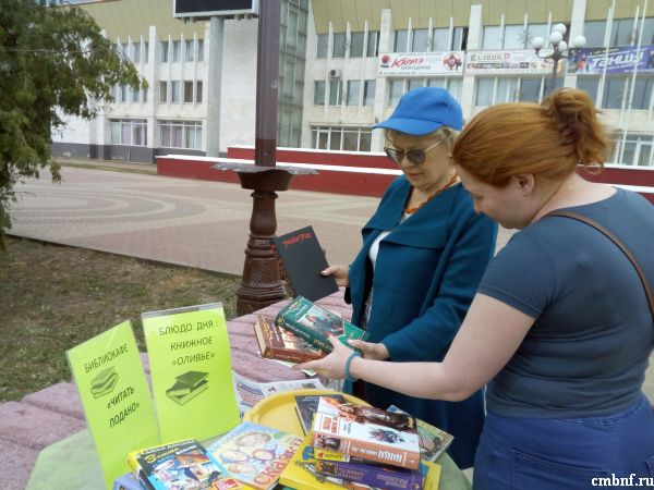 26 июня сотрудники отдела обслуживания читателей Центральной библиотеки (ул. Маршала Жукова, д.10) работали на летней площадке «Читальный зал под открытым небом» в рамках проекта «Читающий город». Для жителей города было открыто Библиокафе, где блюдом дня стал «Книжный оливье».