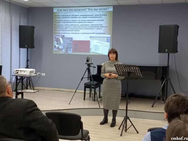 21 октября в Сергиевом Посаде в Центральной городской библиотеке им. А. С. Горловского библиотекари Подмосковья обсудили «самые успешные методики «практического» краеведения и наиболее востребованные у аудитории проекты по изучению родного края». Елена Павлова представила краеведческий проект «Героев помним имена» и поделилась с коллегами опытом работы по сохранению памяти об участниках Великой Отечественной войны, чьи имена присвоены улицам и учреждениям города Наро-Фоминска.
