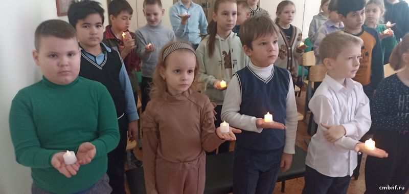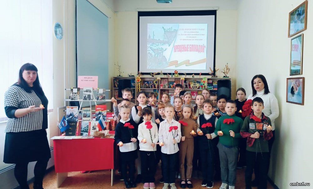 Мероприятие подготовили библиотекарь Оксана Сажина и сотрудники Дома культуры. Школьники узнали о тяжелых испытаниях, выпавших на долю жителей осажденного Ленинграда: о голоде и холоде, о детях и женщинах, работавших наравне с мужчинами на заводах, о защите и обороне города советскими солдатами.
