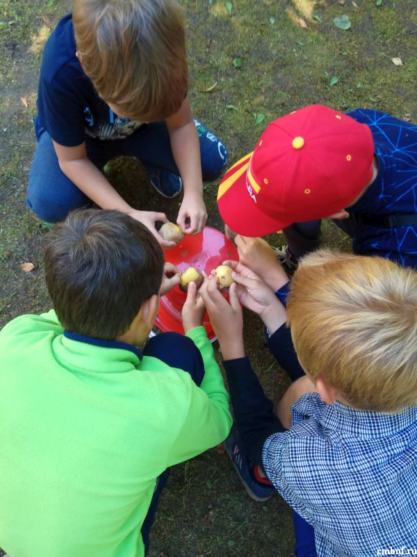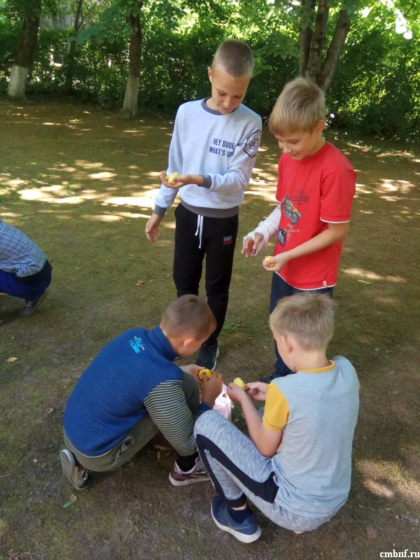 Затем между ребятами прошли соревнования на умение отжиматься, качать пресс, метать, прыгать в длину и даже чистить картошку.