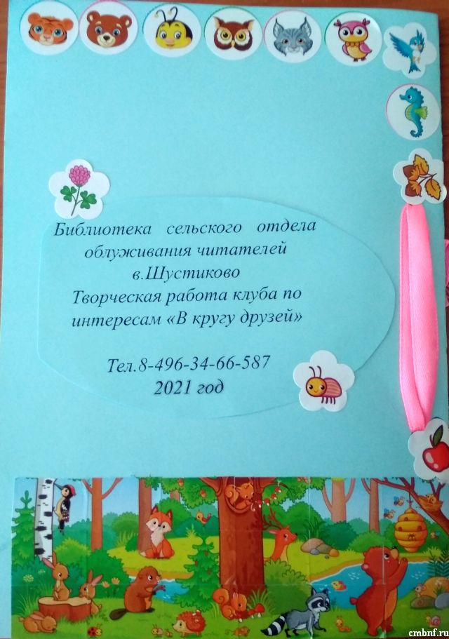 В рамках ежегодного празднования Недели детской и юношеской книги в сельском отделе обслуживания читателей в д.Шустиково библиотекарь И.А. Крутина совместно с участниками клуба «В кругу друзей» приняла активное участие в районом конкурсе «Потомучка для Почемучек». Своими руками была изготовлена коллективная книжка-малышка «Кто что ест».