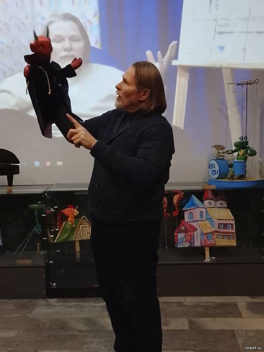 Руководитель театра «Маэстро» Дмитрий Шаров провел увлекательную экскурсию, посвященную истокам театра кукол в России. Экскурсия началась с интересного рассказа о зарождении и развитии кукольного искусства на территории нашей страны.