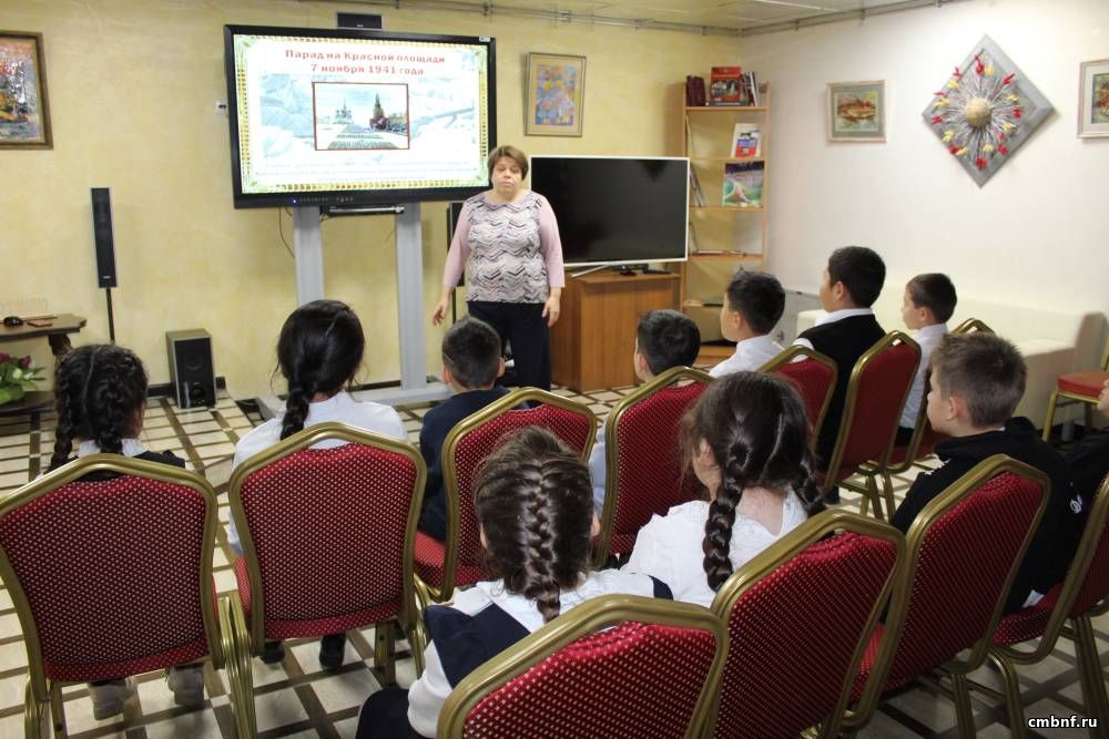 Об одном из важных событий Великой Отечественной войны, параде на Красной площади в Москве 1941 года, узнали дети на мероприятии. Юные читатели внимательно слушали рассказ библиотекаря, который сопровождался слайдами презентации.