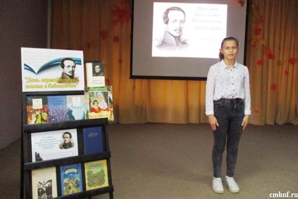 Закончилось мероприятие чтением стихов Лермонтова по памяти или из предложенных книг на фоне книжной выставки «День Лермонтовской поэзии в библиотеке», оформленной к мероприятию. А отрывок из стихотворения «Бородино» был прочитан всеми участниками мероприятия стоя. За лучшие ответы участники викторины были награждены сувенирами. Лермонтовский день поэзии в библиотеке завершился. Каждый смог прикоснуться к поэзии человека «с русскою душой», в котором был героический дух, лиризм, глубина мысли, простота в сочетании с высоким совершенством формы, удивительная музыкальность.