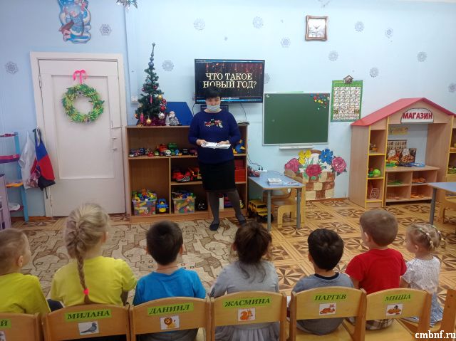 В ходе мероприятия библиотекарь Крутина Ирина Александровна рассказала ребятам историю празднования Нового года и Рождества. Дети с удовольствием поучаствовали в новогодней викторине «Зима - поле чудес». Активно отвечали на вопросы о сказках и мультфильмах про Новый год. После викторины был устроен показ мультфильмов «Дед Мороз и серый волк», «Когда зажигаются ёлки», «Снеговик почтовик».