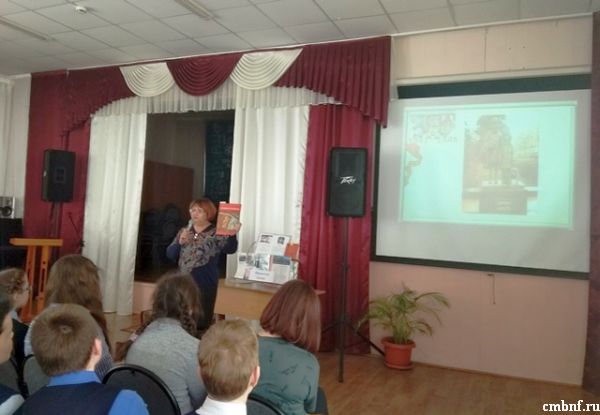 На экране началась презентация «Маленькие герои большой войны». С огромным интересом просмотрели и прослушали ребята всю предложенную информацию, почтили память погибших минутой молчания, в заключение встречи полистали представленные на выставке книги о юных героях.
