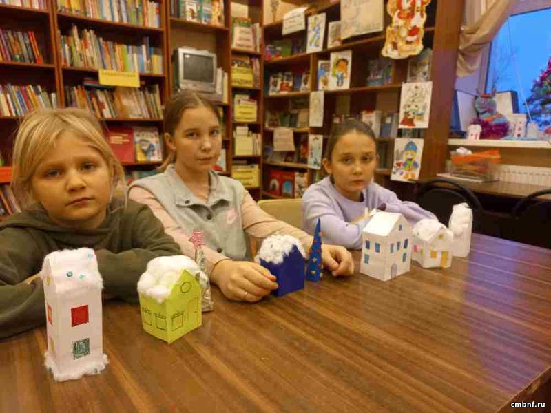 Творческая мастерская Деда Мороза работает в библиотеке пос. Архангельский. Для участников кружка «Рукотворушка» прошел мастер-класс по изготовлению зимних домиков.