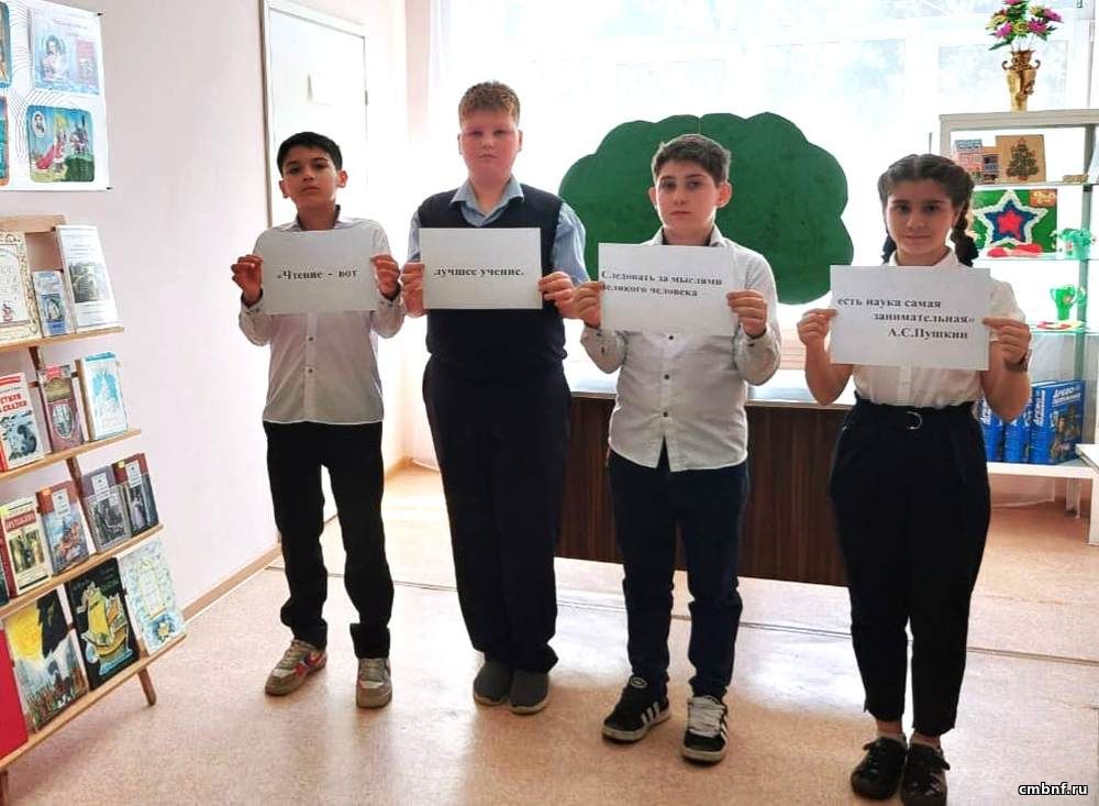 Выполняя задания, участники должны были собрать все части ключевой фразы А. Пушкина: «Чтение – вот лучшее учение. Следовать за мыслями великого человека есть наука самая занимательная».