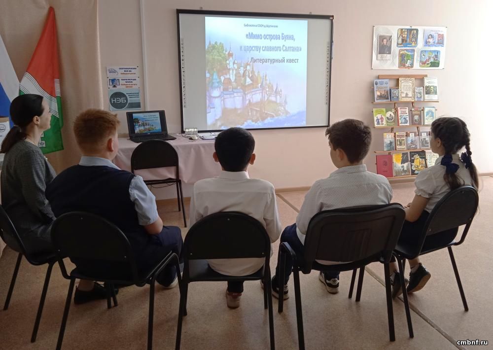 6 июня, в рамках празднования Пушкинского дня России, библиотекарь сельского отдела обслуживания читателей д.Шустиково Оксана Аксенова провела для детей литературный квест «Мимо острова Буяна, в царство славного Салтана».