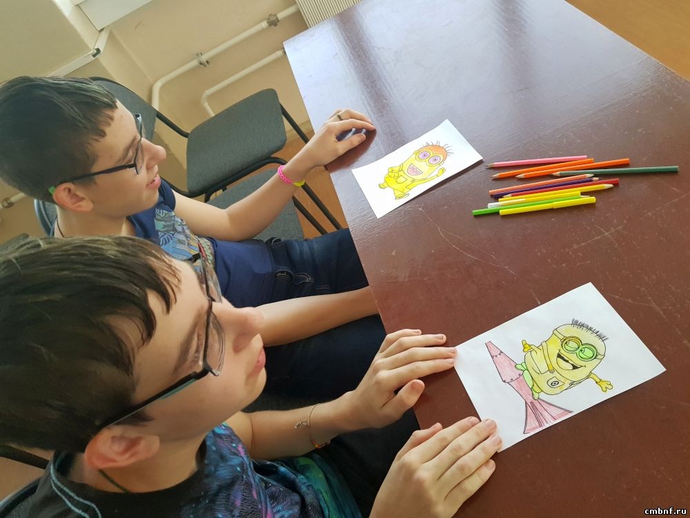 В отделе обслуживания читателей (Латышская 15б) для ребят с ограниченными возможностями здоровья прошла игровая программа «Миньоны умеют дружить». Ребятам из реабилитационного центра «Сказка», как и многим другим детям, давно полюбились маленькие забавные герои известного мультфильма «Гадкий я». И поэтому, они с удовольствием сыграли роли этих смешных жёлтых существ, поучаствовали в миньонских играх, станцевали банановый танец, посмотрели мультипликационную историю жизни миньонов и даже поговорили на миньонском языке. А потом раскрасили портреты полюбившихся им персонажей.