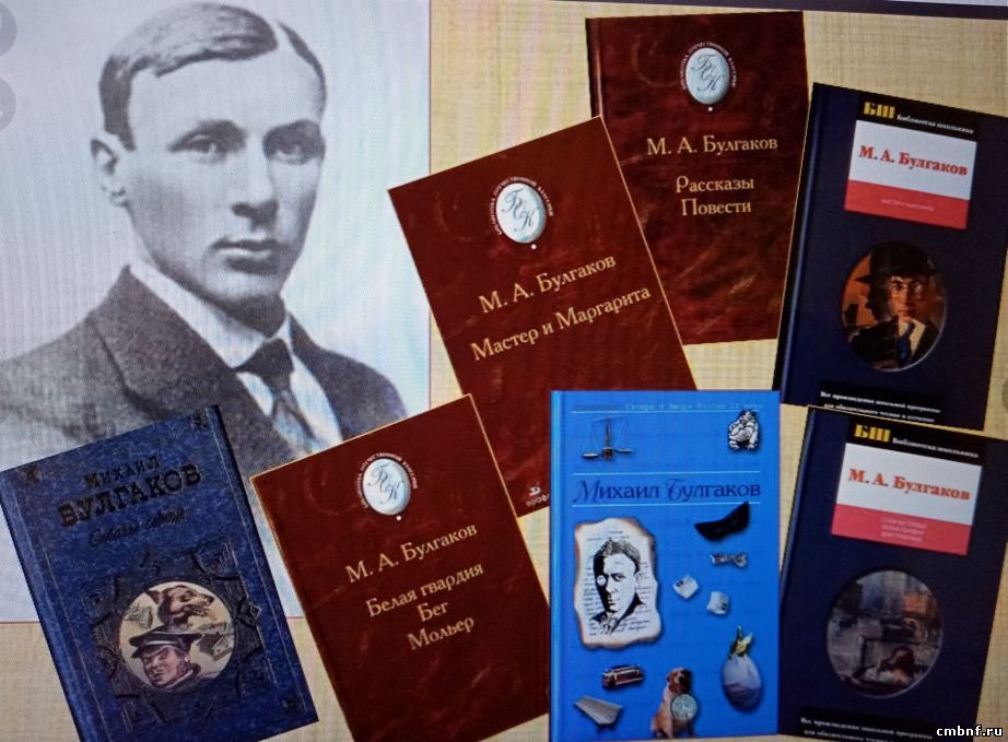 В библиотеке д Благовещенье была оформлена книжная выставка к 130-летию со дня рождения М. А. Булгакова. Родился писатель 18 мая в городе Киев в интеллигентной семье профессора Киевской духовной академии. В1909 году окончил гимназию, затем поступил в медицинский институт, работал в госпитале. Затем стал писателем, ставил сценки, комедии. Михаил Булгаков написал очень много известных произведений: «Мастер и Маргарита», «Белая гвардия», «Собачье сердце» и других.