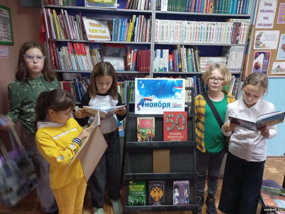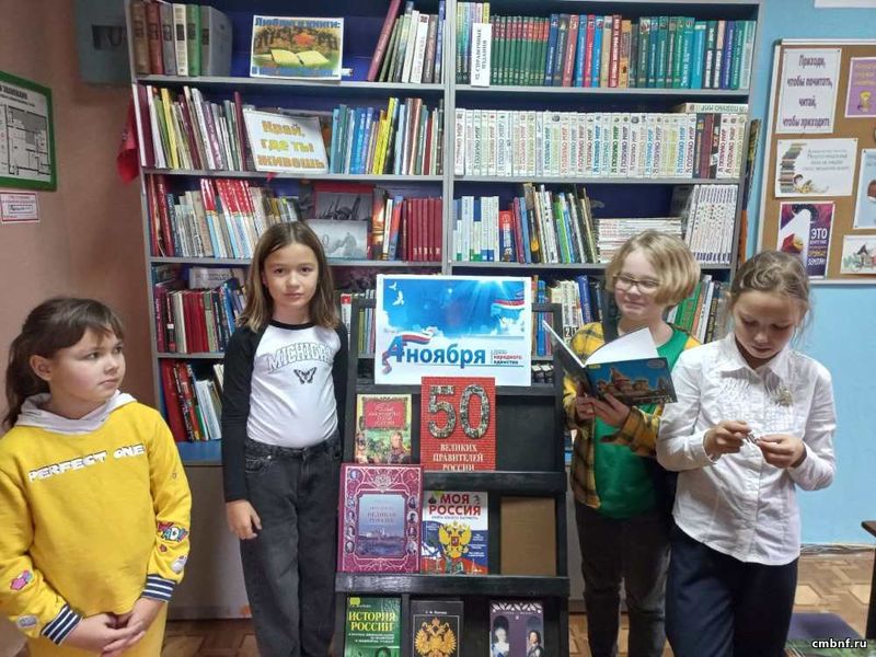 К мероприятию была оформлена книжная выставка «4 ноября - День народного единства». Библиотекарь рассказала о традициях, символах и атрибутах праздника. В завершение мероприятия участники слушали песни, посвященные России.