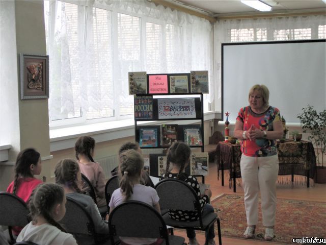 Праздничная программа, посвященная Дню России, началась в отделе обслуживания читателей (ул. Латышская, 15б) с просмотра видеоролика «Мы живём в России». Библиотекарь Цепкова М.М. прочитала ребятам стихи о красоте и богатстве нашей Родины. Поэтические строки из книги В. Степанова «Необъятная страна» разбудили в юных гражданах России чувство гордости и уважения к истории и богатствам своей страны. Послушали ребята, а это воспитанники спортивной школы, и интересную беседу на тему «Нет в мире краше Родины нашей», вспомнили и другие меткие и поучительные пословицы о Родине.