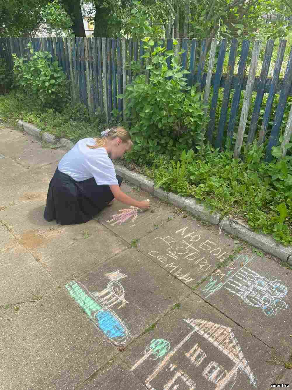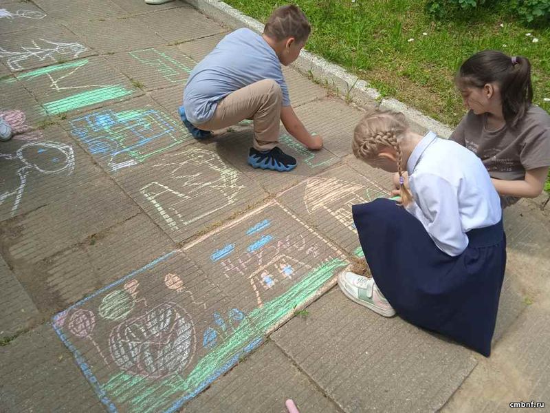 Дети с удовольствием воплощали на асфальте свои задумки, придерживаясь условия конкурса - изобразить семью не менее трёх человек.