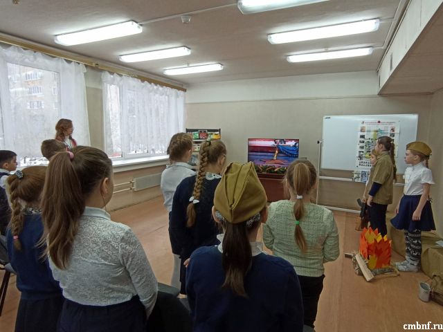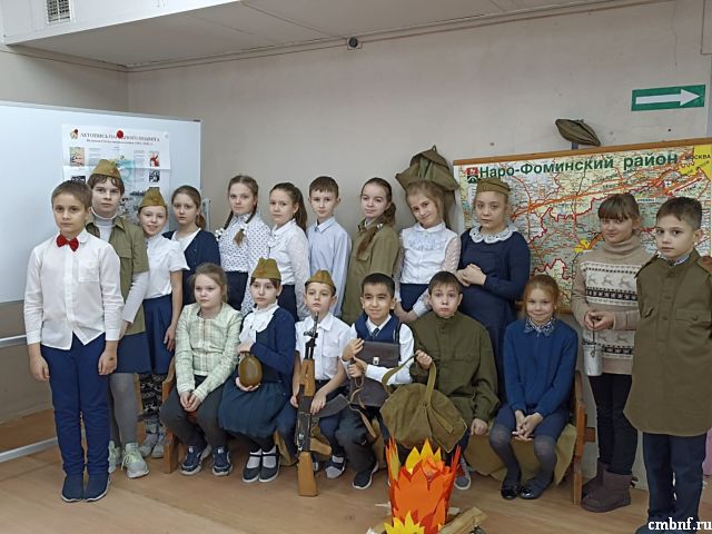В рамках празднования 80-летия со дня освобождения Наро-Фоминска от гитлеровских захватчиков сотрудниками отдела обслуживания читателей (ул. Латышская, 15б) была проведена историко-литературная композиция «Москва за нами». Библиотекари рассказали об ожесточенных боях на нашей родной земле и мужестве защитников города. Встреча дополнялась видеохроникой событий Московской битвы, звучали песни военных лет. Проникновенное исполнение школьниками стихотворений тронуло сердца юных слушателей. Инсталляция привала и военного снаряжения помогли еще больше погрузиться в атмосферу фронтовых дней 1941 года. Память погибших воинов почтили минутой молчания.