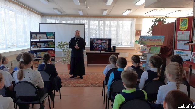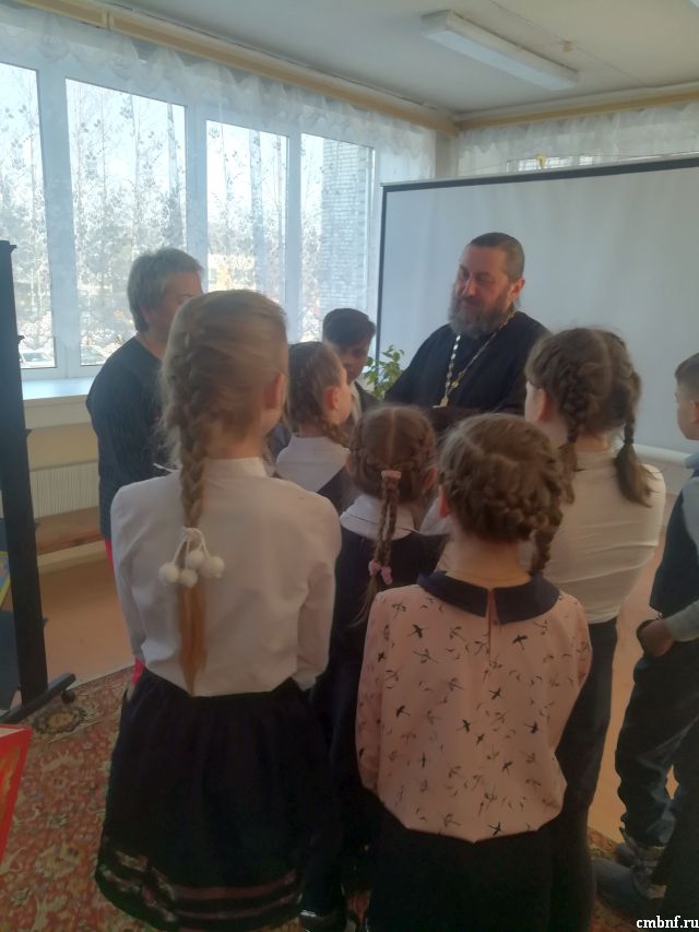 По просьбе школьников и родителей на мероприятие приехал отец Сергий - Настоятель Храма Новомучеников и Исповедников Церкви Русской. Ребята с большим интересом послушали его рассказ о предстоящем празднике Пасха и периоде Великого Поста.