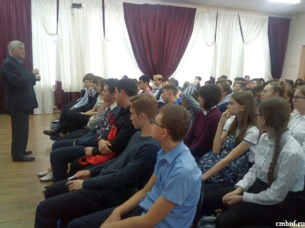 24 декабря сотрудники отдела обслуживания читателей Центральной библиотеки провели с учащимися средней школы № 7 заседание лектория «Отечество». На встречу с ребятами пришёл известный в Наро-Фоминске писатель-краевед Мельников В.М. Владимир Михайлович рассказал, как осенью 1941 года в ходе наступления немецко-фашистских войск на Москву по плану «Тайфун» Наро-Фоминск оказался на направлении главного удара. По приказу Ставки для прикрытия наро-фоминского направления была развёрнута 33 армия, командующим которой был назначен генерал-лейтенант М.Г. Ефремов. Тема московской битвы и боевых действий под Наро-Фоминском – основная в творчестве В.М. Мельникова.