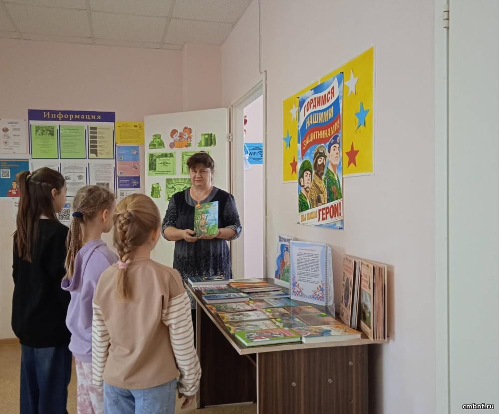 Библиотекарь Оксана Аксенова рассказала читателям историю возникновения праздника и провела обзор по выставке, вспомнив героев нашей Отчизны.