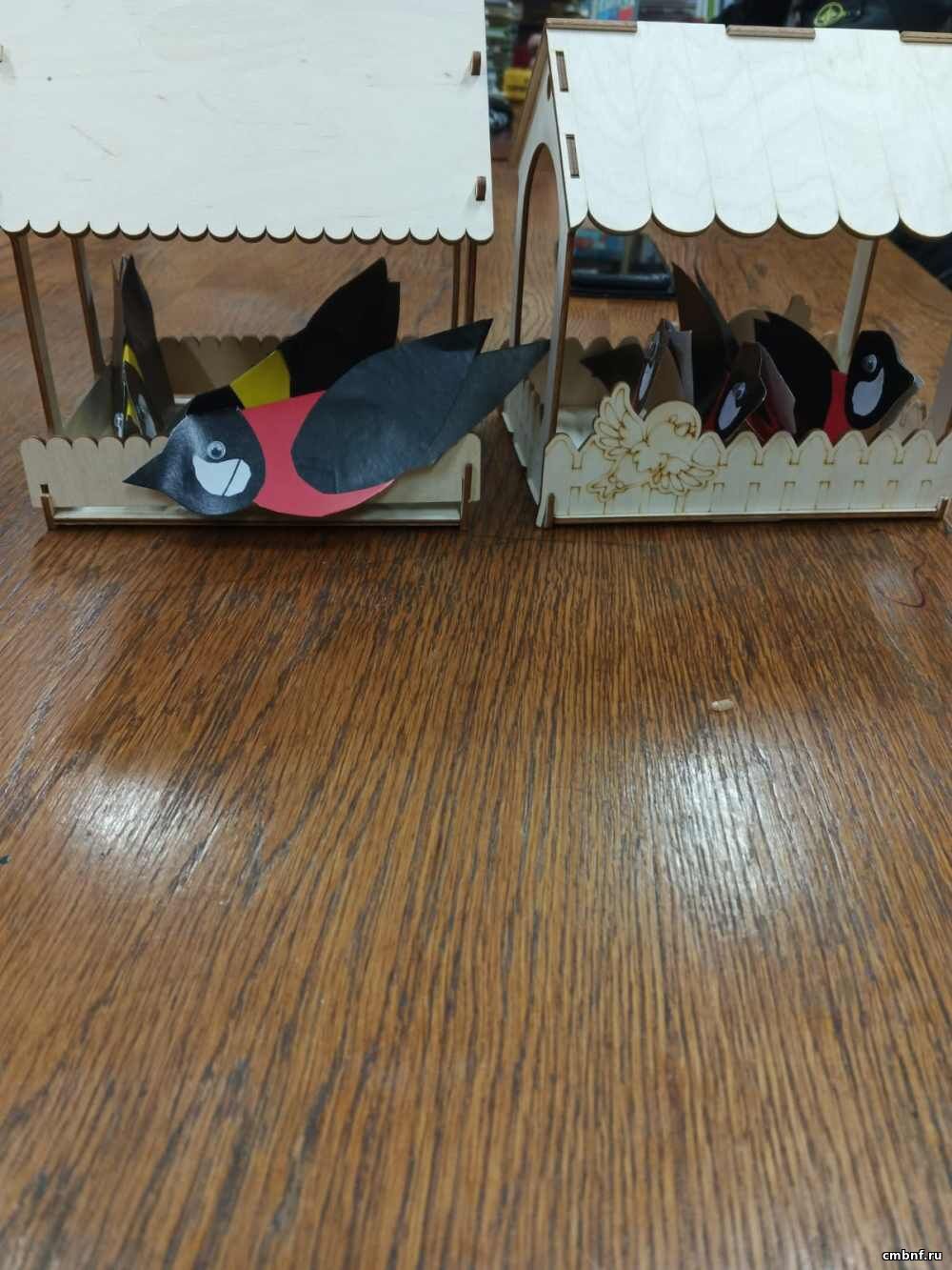 Библиотекарь рассказала о различных видах зимующих птиц, их привычках и предпочтениях в питании. В ходе мастер-класса дети изготовили кормушки из подручных материалов.