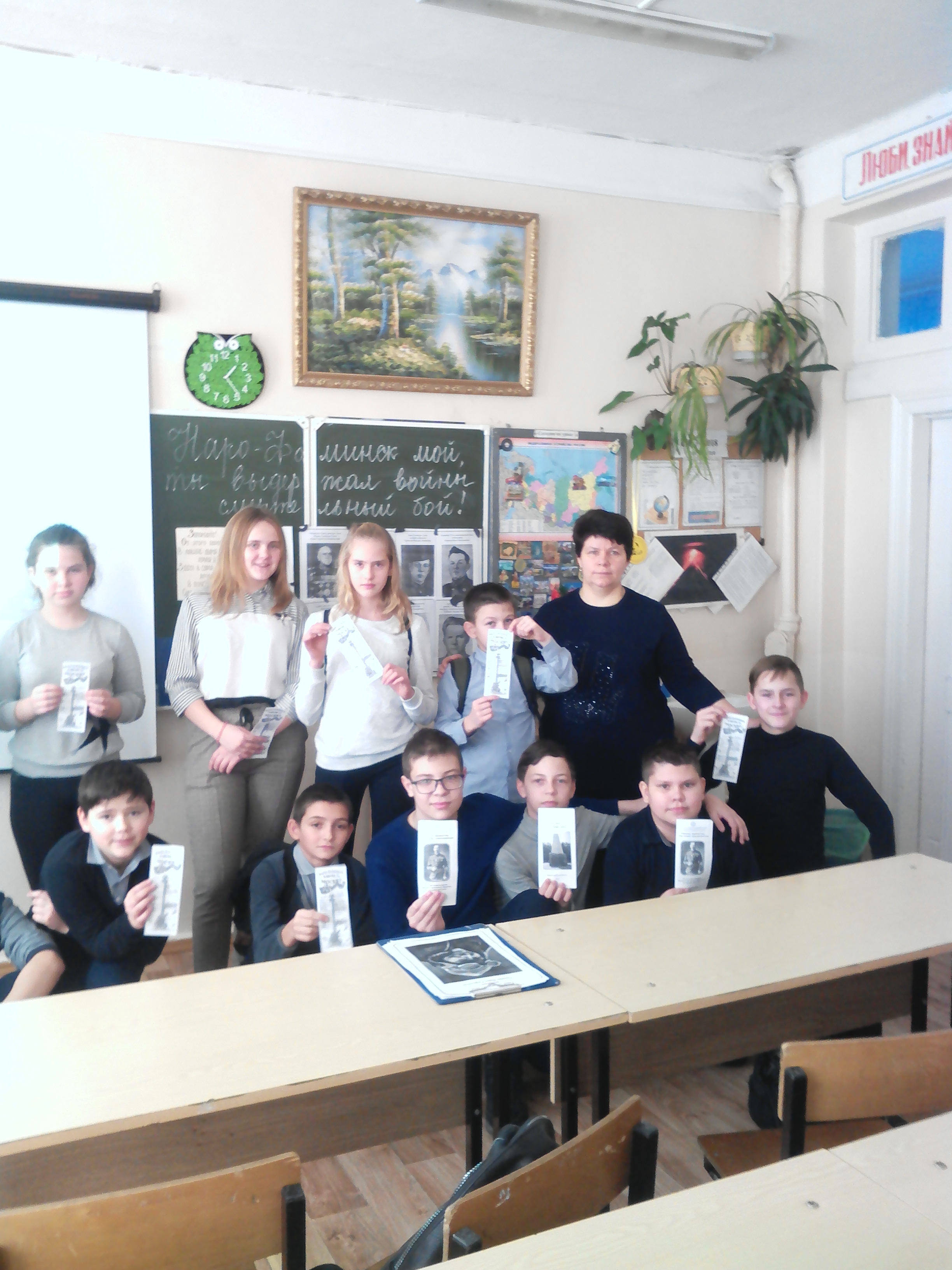 Библиотекарь сельского отдела обслуживания читателей в п. Архангельский Жукова В.Н. для учащихся Назарьевской средней школы провела литературную композицию, посвященную Дню освобождения Наро-Фоминска от немецко-фашистских захватчиков.