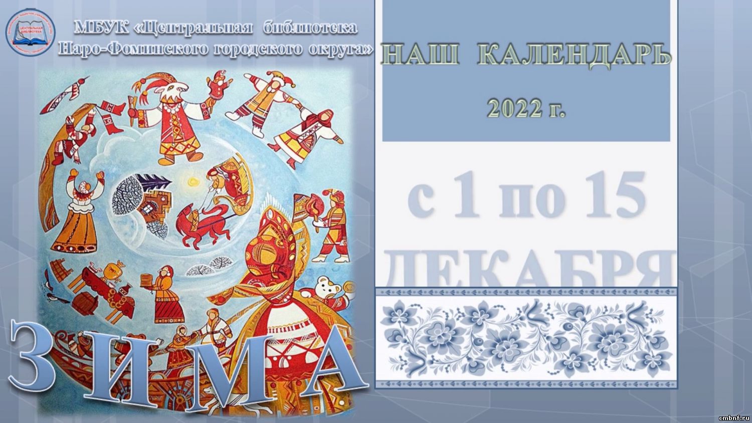 Представляем вашему вниманию «Наш календарь» знаменательных и памятных дат с 1 по 15 декабря, подготовленный Лукьяновой И.А. - библиографом информационно-библиографического отдела.