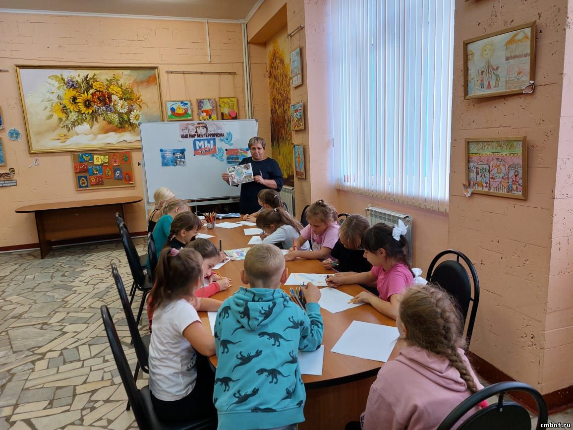 3 сентября в библиотеке д.Головково прошел конкурс рисунка «Наш мир без терроризма», посвящённый Дню солидарности в борьбе с терроризмом и памяти жертв терактов. В ходе мероприятия юные посетители узнали об истории возникновения терроризма и о наиболее известных терактах последнего десятилетия, в том числе и о трагедии, которая произошла в сентябре 2004 года в городе Беслане. Библиотекарь Наталья Вечкаева рассказала ребятам о правилах безопасности поведения при терактах, правилах безопасности на улице и в общественных местах. Затем предложила юным читателям взять разноцветные карандаши и мелки и внести свой маленький вклад в борьбу за мир во всем мире и выразить в рисунках свое отношение к терроризму и его угрозе