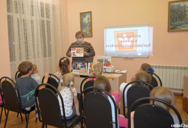 Библиотекарь рассказала маленьким читателям о мерах по предотвращению возникновения пожаров в жилых домах и квартирах. Перечислила основные правила пользования электроприборами, бытовыми газовыми плитами. Мероприятие сопровождалось просмотром видеороликов и отрывками из обучающего мультфильма «Фиксики». Закрепили полученные знания ребята в игре «Электроприборы в загадках».