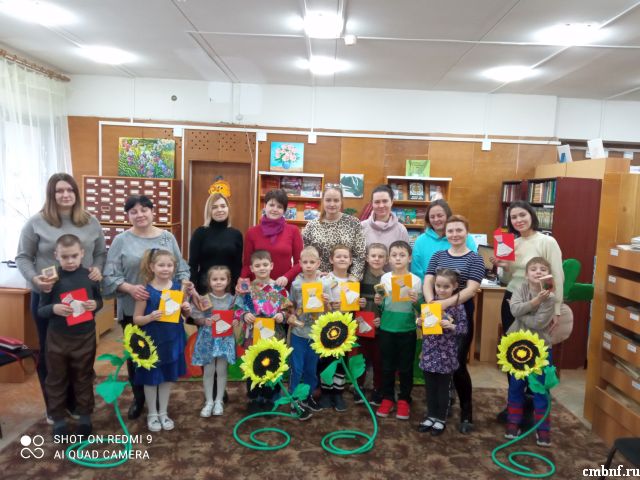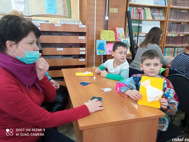 Библиотекарь Л.А. Нестеренко поздравила мам с праздником, рассказала о том, что День матери праздновали ещё в Древнем Риме, а в России праздник был утверждён Указом Президента РФ в 1998 году. Провела с детьми викторину «Вопрос о маме», с мамами игру «Угадай ребёнка», дети показали сценку «Репка на новый лад», а в завершение был проведён мастер-класс по изготовлению праздничных открыток. Получилось красиво!