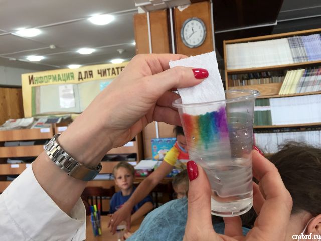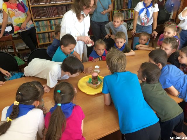 22 июля сотрудники отдела обслуживания читателей Центральной библиотеки (ул.Маршала Жукова,10) пригласили ребят в библиотечную лабораторию на мероприятие, приуроченное к Году науки и технологий. Любознательных встречали Профессор (библиотекарь Никифорова Н.Б.) и его Ассистент (волонтер-читатель Анастасия Никифорова) в окружении баночек и скляночек с различного цвета порошками и жидкостями. Перед гостями лаборатории развернулось настоящее чудо: несмешивающиеся между собой жидкости, имитация кипения магмы и извержения вулкана, «самонадувающийся шарик» и «растущая радуга», а также поднятие жидкости в стакане вопреки законам физики.