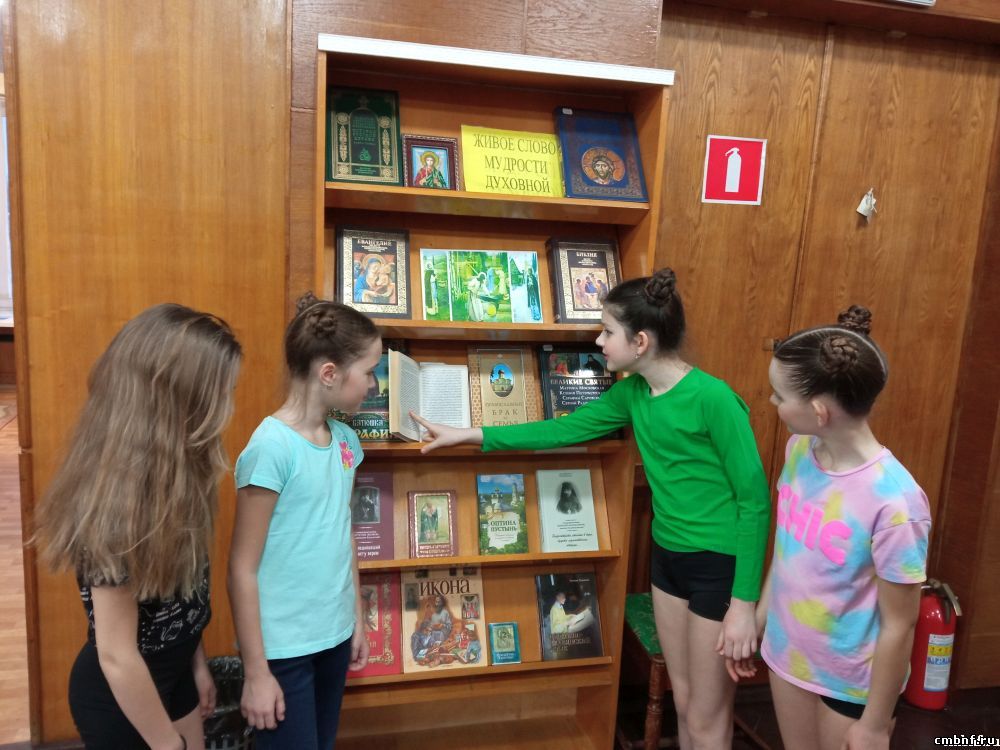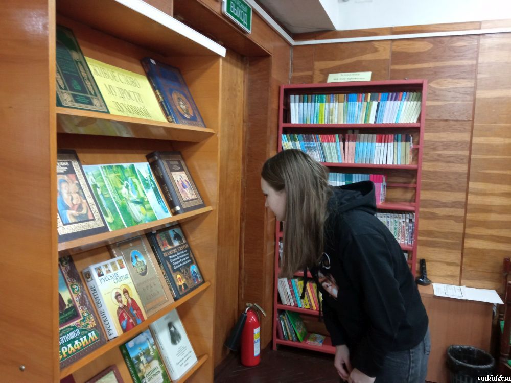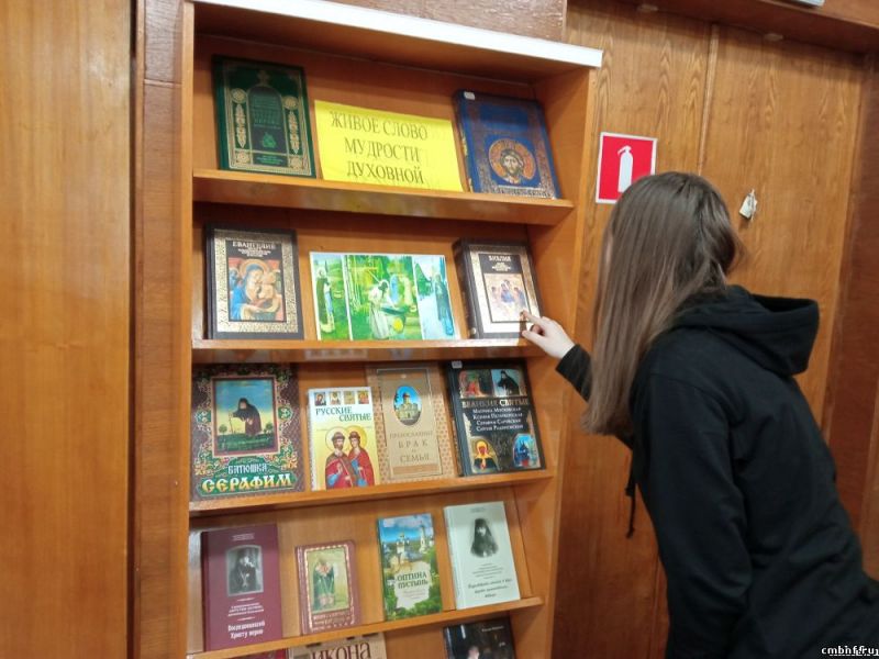 Отдел обслуживания читателей (ул. Маршала Жукова д.10) подготовил выставку православной литературы, так же была проведена беседа под названием «Источники мудрости». Присутствующие прослушали рассказ о том, когда появились книги на Руси, как они создавались до возникновения книгопечатания, о ценности каждой книги, о жанрах современной православной литературы.