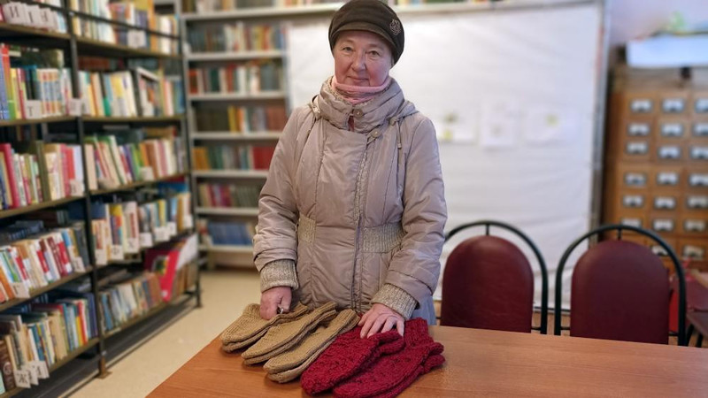 Постоянная читательница библиотеки, участница проекта «Активное долголетие в Подмосковье», подготовила небольшие подарки - связала теплые носочки на зиму.