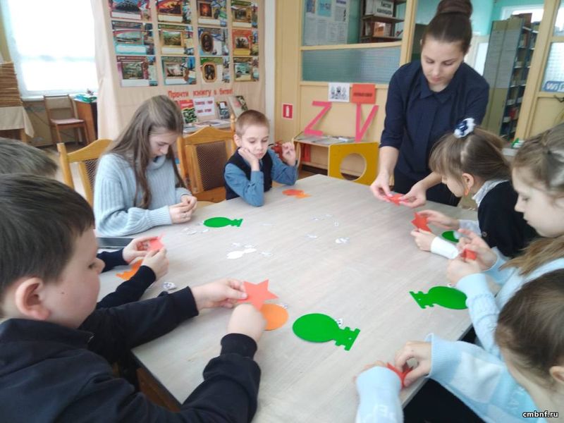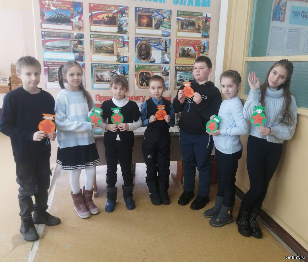 Библиотекарь рассказала историю возникновения праздника 23 февраля. Ребята ответили на вопросы викторины, а после приступили к изготовлению поздравительных медалей ко Дню защитника Отечества.