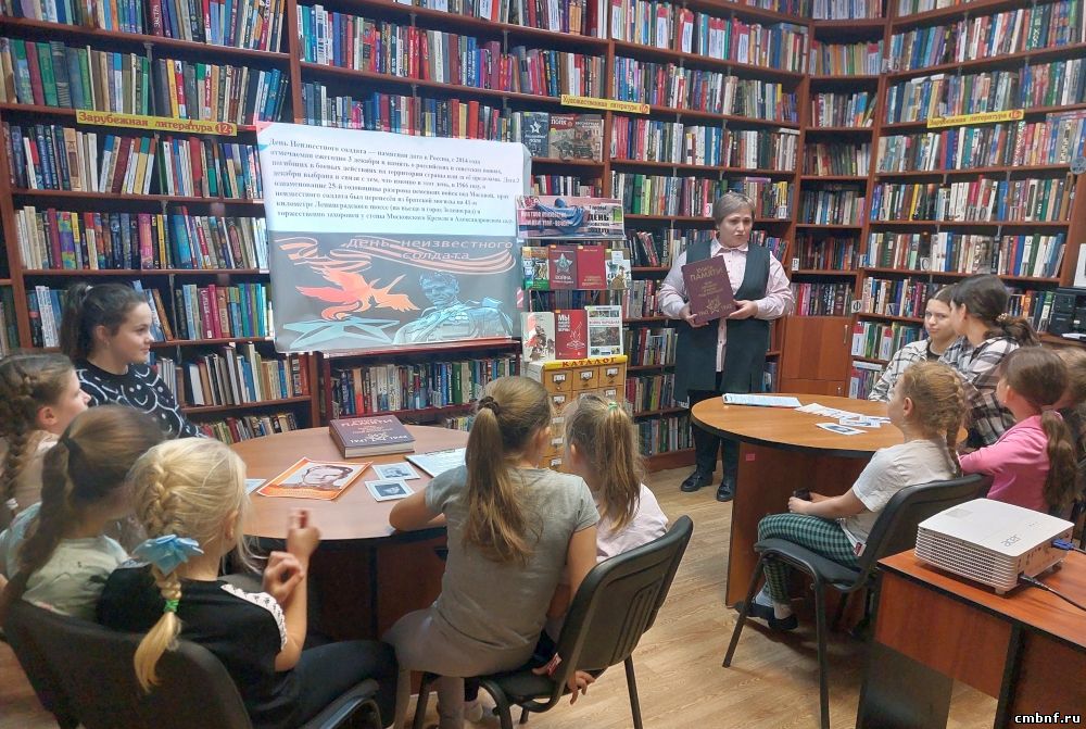 2 декабря, накануне Дня неизвестного солдата, библиотекарем сельского отдела обслуживания читателей в д.Головково Натальей Вечкаевой и культорганизатором ДК «Головково» Ю.Гнединой был проведен патриотический час «О тебе, неизвестный солдат». Организаторы мероприятия познакомили ребят с историей памятной даты и рассказали о результатах огромной работы, которую проводят поисковые отряды, по крупицам собирая материал о великом историческом наследии наших земляков. Подчеркнули важность воспитания любви к Родине, бережного отношения к её прошлому и настоящему. Далее присутствующие приняли участие в патриотической викторине «Неизвестный солдат».