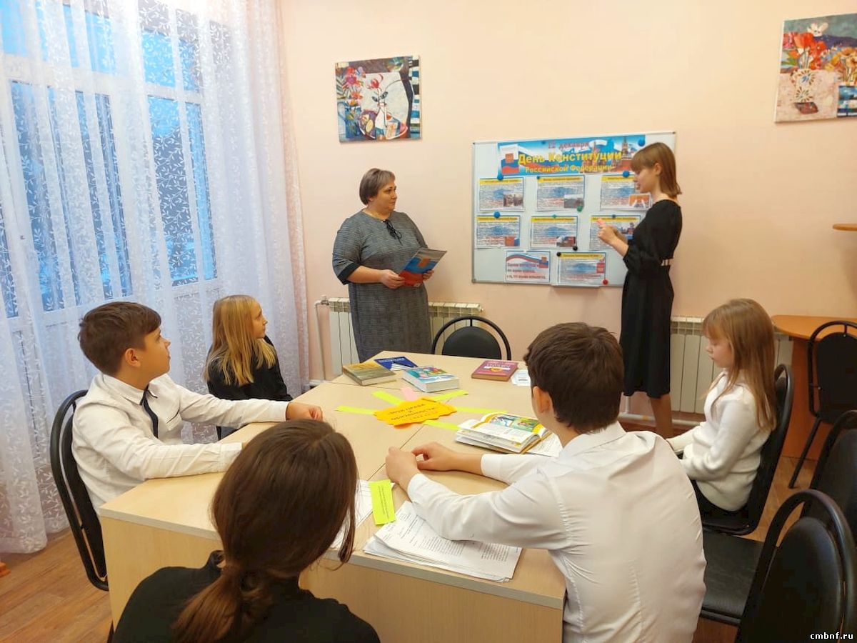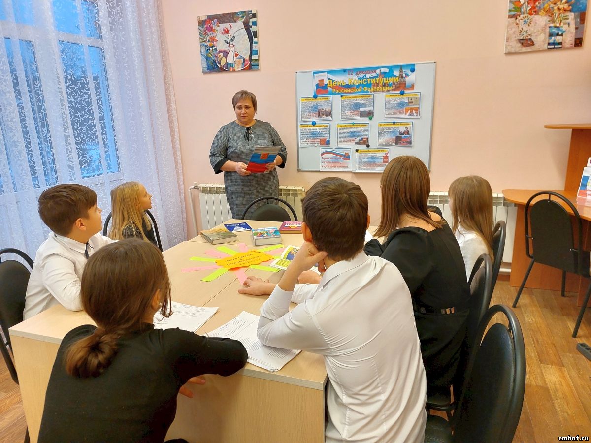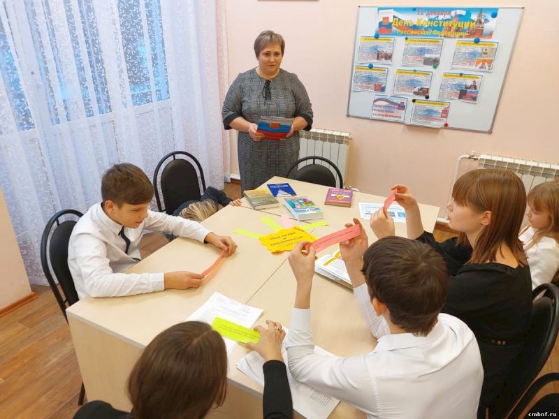 Библиотекарь Наталья Вечкаева наглядно представила юным читателям историческую справку о принятии Конституции Российской Федерации, напомнила о структуре главного закона государства. Ребята узнали, какие права имеют граждане России и какие должны соблюдать законы и правила. Также участники мероприятия познакомились с символами нашей Родины и ответили на вопросы правовой викторины.