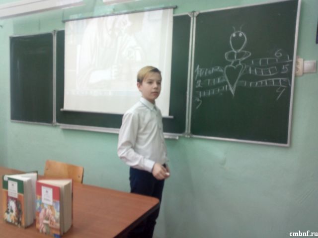 9 февраля сотрудники отдела обслуживания читателей (ул. Маршала Жукова,10) провели литературный вечер «Очарованный Русью», посвящённый 190-летию русского писателя Н.С. Лескова и 140-летию со дня издания его знаменитого произведения «Сказ о тульском косом Левше и о стальной блохе (Цеховая легенда)» с учащимися городской школы № 7. Библиотекарь С.И. Ревина познакомила детей с биографией писателя, с его творчеством, показала видеоролик «Левша», провела кроссворд-викторину «Блоха». Дети активно отвечали на вопросы, всем было интересно.