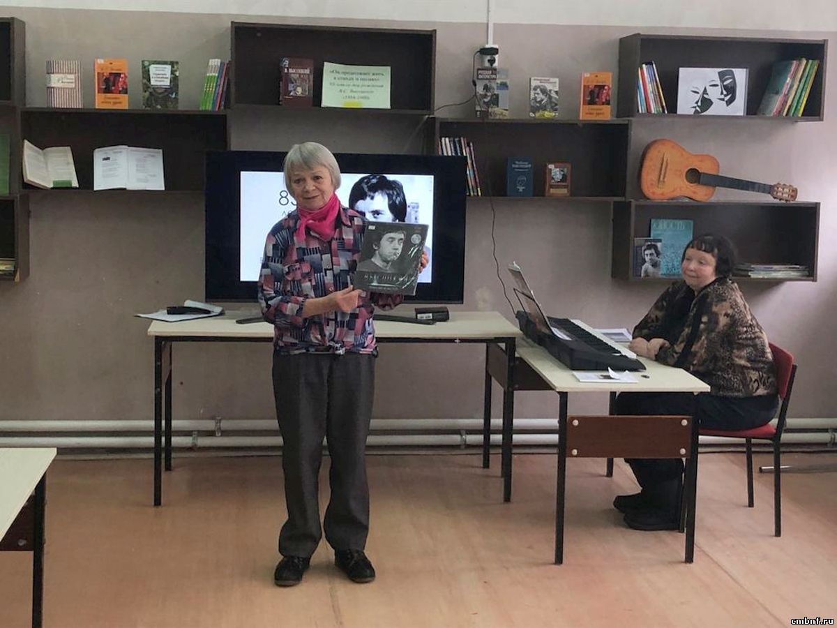 Библиотекарь отдела обслуживания (Латышская, д. 15Б) Ревина Светлана Ивановна провела литературно-музыкальную встречу, на которой прозвучали записи песен в исполнении автора, его биография, стихи в исполнении гостей мероприятия, а также была представлена книжная выставка, посвященная творчеству В.С. Высоцкого.