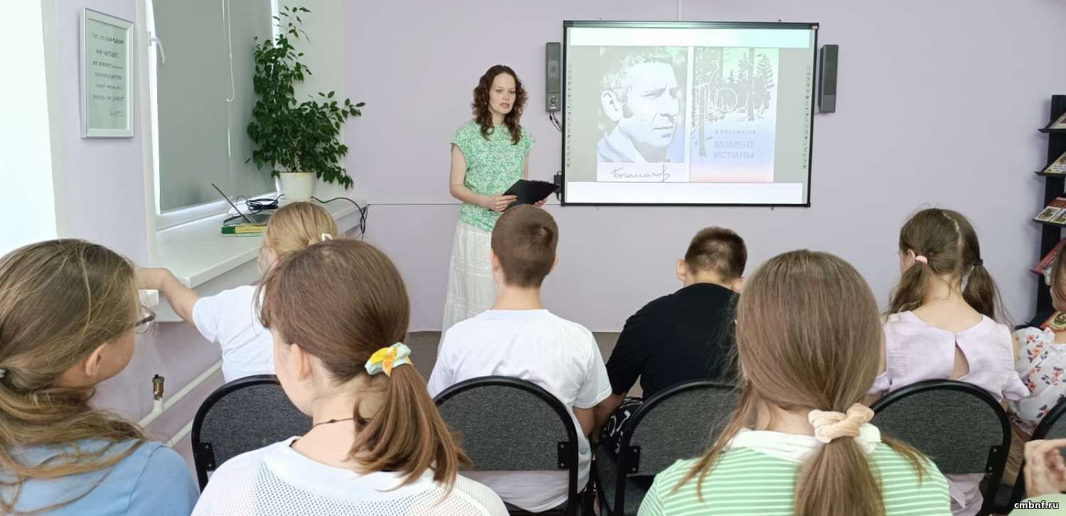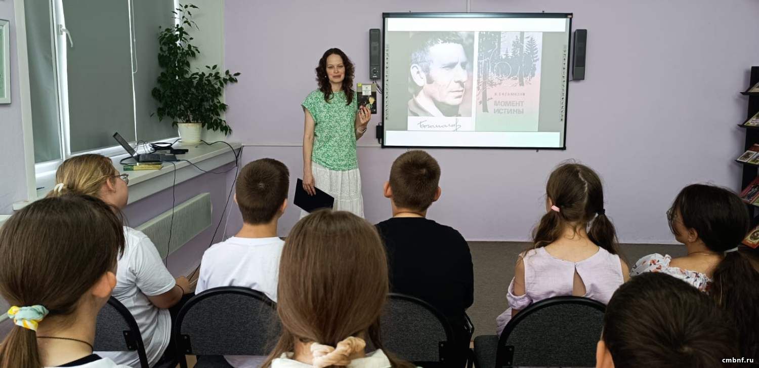 Библиотекарь Наталья Никифорова рассказала присутствующим о биографии писателя, провела обзор его произведений. Ребята приняли активное участие в обсуждении повести «Иван» о судьбе мальчика-разведчика.