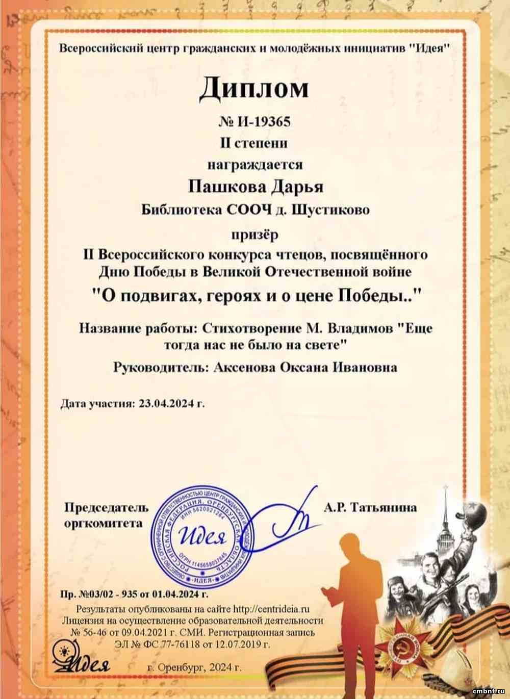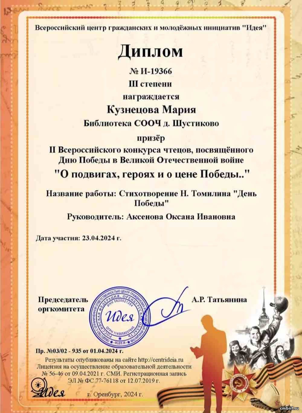 Читатели библиотеки д.Шустиково приняли участие во ΙΙ Всероссийском онлайн-конкурсе чтецов, посвящённом Дню Победы в Великой Отечественной войне.
