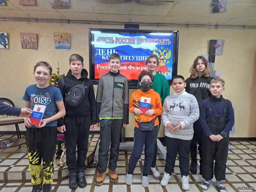 Библиотекарь Наталья Присяжнюк провела с ребятами беседу о том, что Конституция РФ – это самый главный закон страны, в котором описаны все права и обязанности граждан. Его обязаны соблюдать все: и взрослые, и дети. Спели Гимн России. Завершилось мероприятие просмотром фильма.