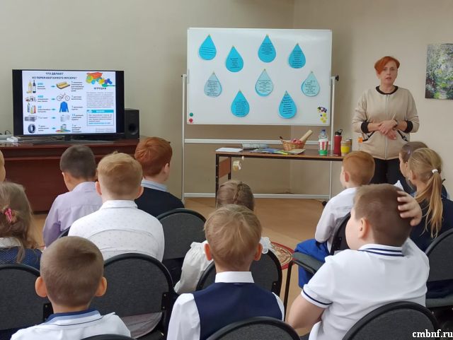 В отделе обслуживания читателей (Латышская, 15 б) для учащихся 3-го класса средней школы № 1 прошел час экологии "От чистого истока". На встречу была приглашена сотрудница отдела экологии администрации Наро-Фоминского г.о. Е.С. Скрипко. В ходе мероприятия школьники нашли ответы на вопросы: есть ли жизнь без воды; откуда вода берется в водопроводе; сколько воды необходимо, чтобы обеспечить потребности человека. Поделились наблюдениями, как теряется вода в природе и в быту. Узнали, кто и как решает водные проблемы. Ребята пришли к выводу, что каждый может стать хранителем воды. Дружно продумали повседневные шаги, которые помогают сберечь воду и те, которые приводят к напрасной трате воды. В завершении мероприятия ребята прочитали стихи о природе и поучаствовали в конкурсе сборки контейнеров из подручных средств.