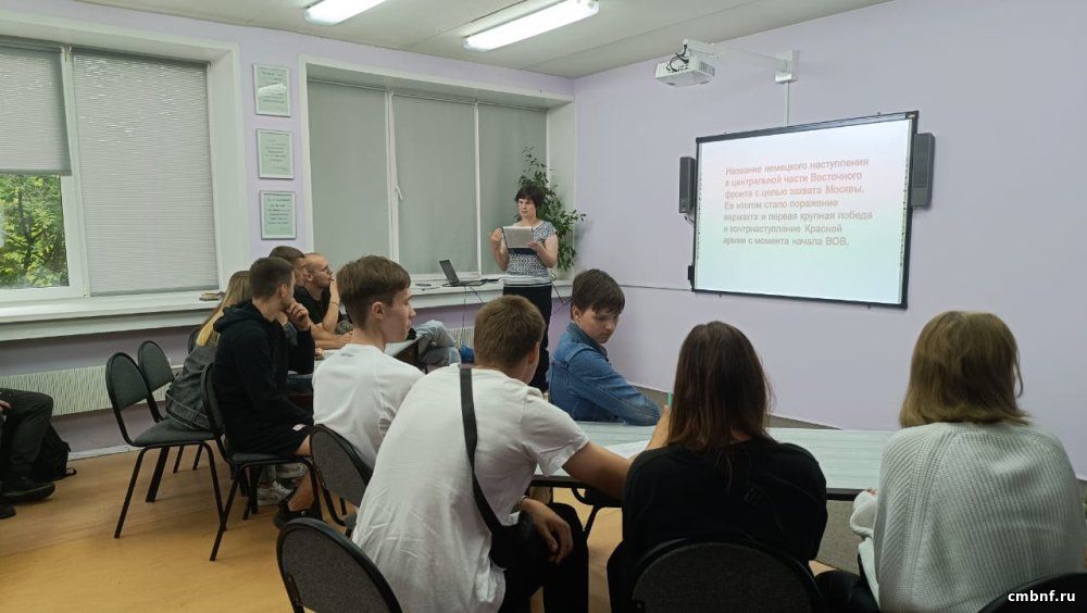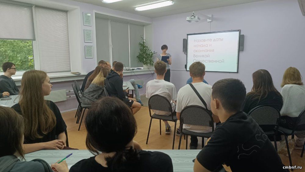 Библиотекарь Анна Колчина рассказала участникам мероприятия о событиях Великой Отечественной войны, напомнила, какой ценой досталась Победа нашему народу. Затем предложила ответить на вопросы раундов: исторического, биографического и героического.