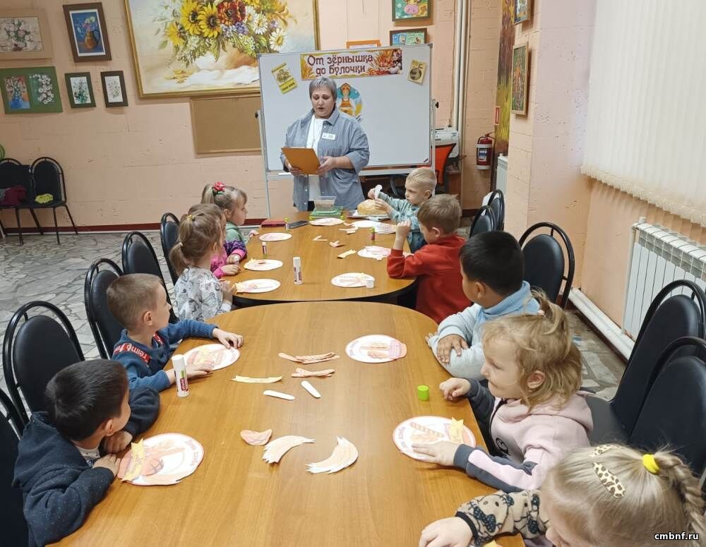 Библиотекарь рассказала ребятам, как из маленького зёрнышка получается ароматный хлеб, из чего его пекут, сколько труда нужно приложить людям, чтобы хлеб оказался в магазине и на нашем столе. Говорили о бережном отношении к хлебу и отгадывали загадки. Затем дошкольники сделали аппликацию-корзинку с хлебобулочными изделиями.