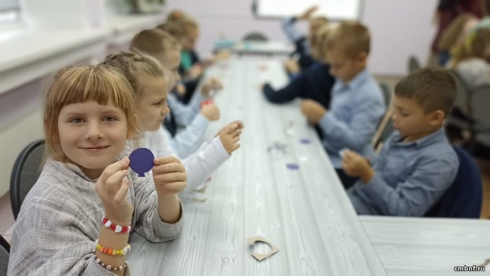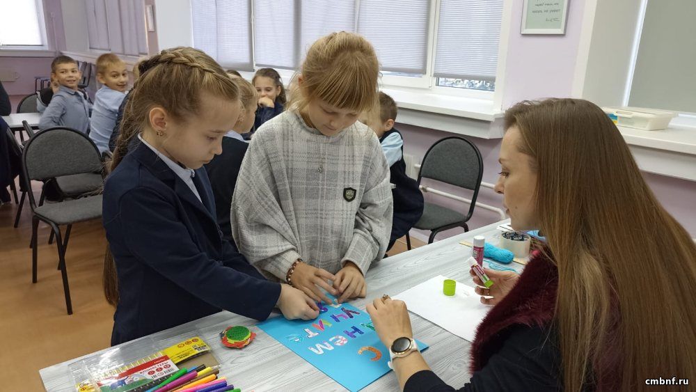 Галина Антонова предложила ребятам сделать открытку своими руками. Дети оформили ее объемными шариками с теплыми поздравлениями любимому учителю.