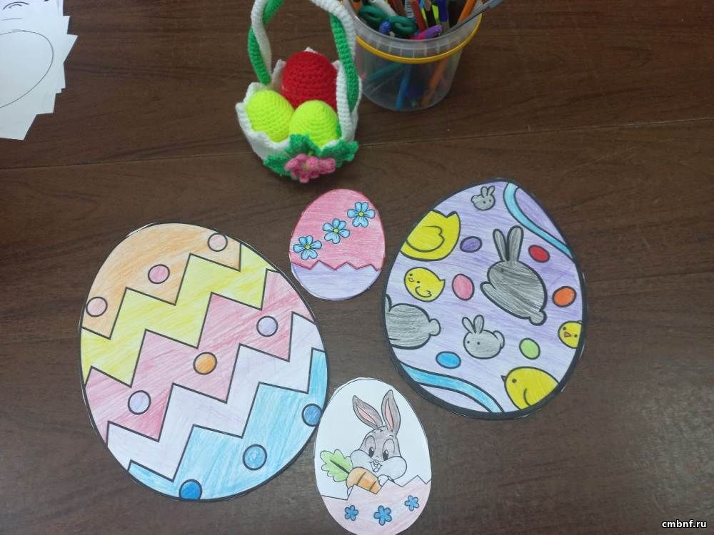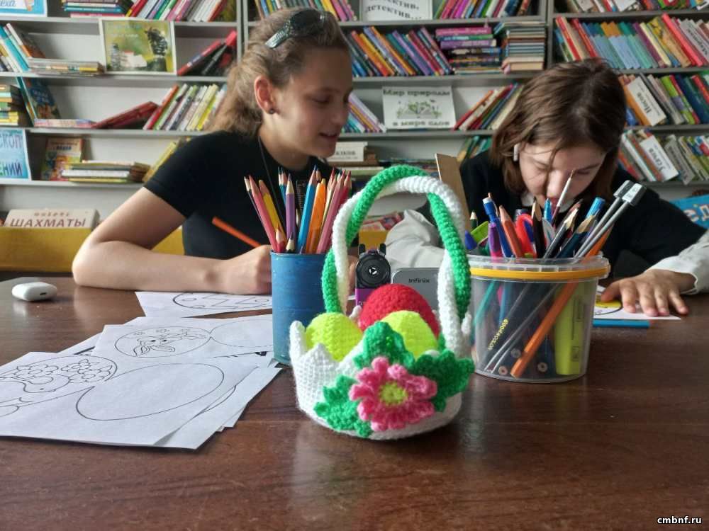 Юные читатели увлеклись раскрашиванием яиц, а старшее поколение связали их и украсили вышивкой.