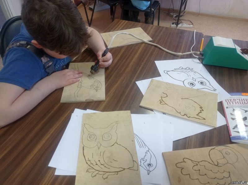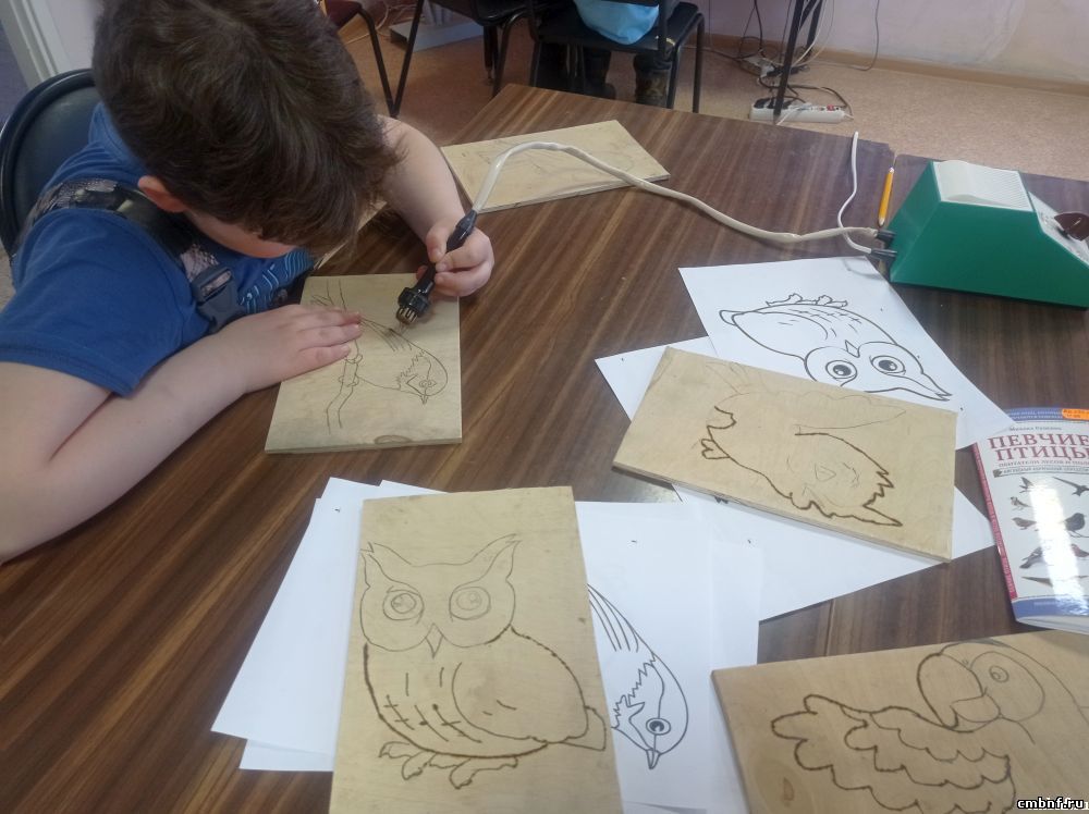 От работы с деревом и электровыжигателем дети получили только удовольствие, каждый радовался результату своего труда.