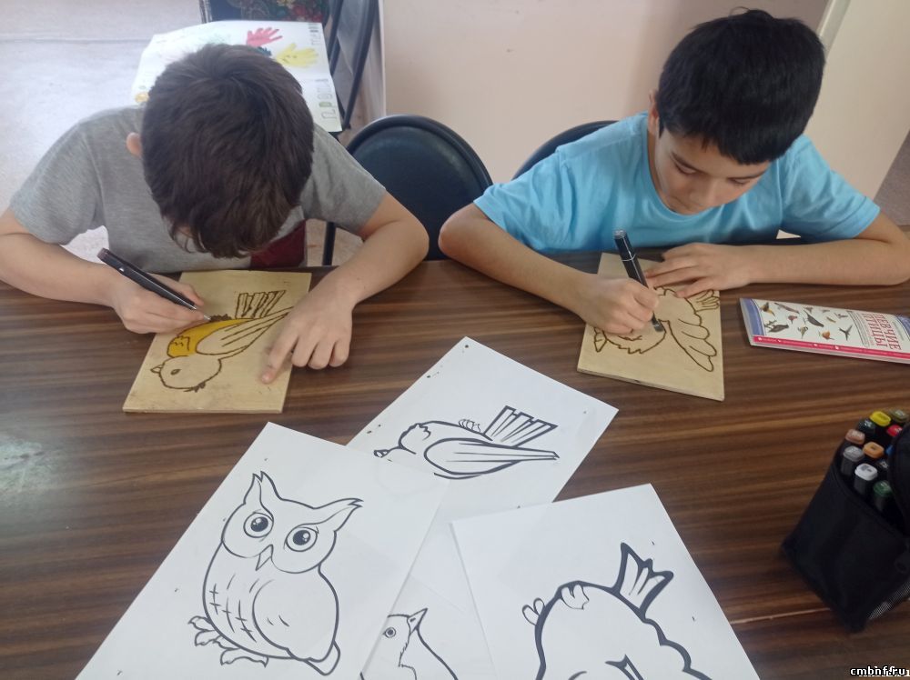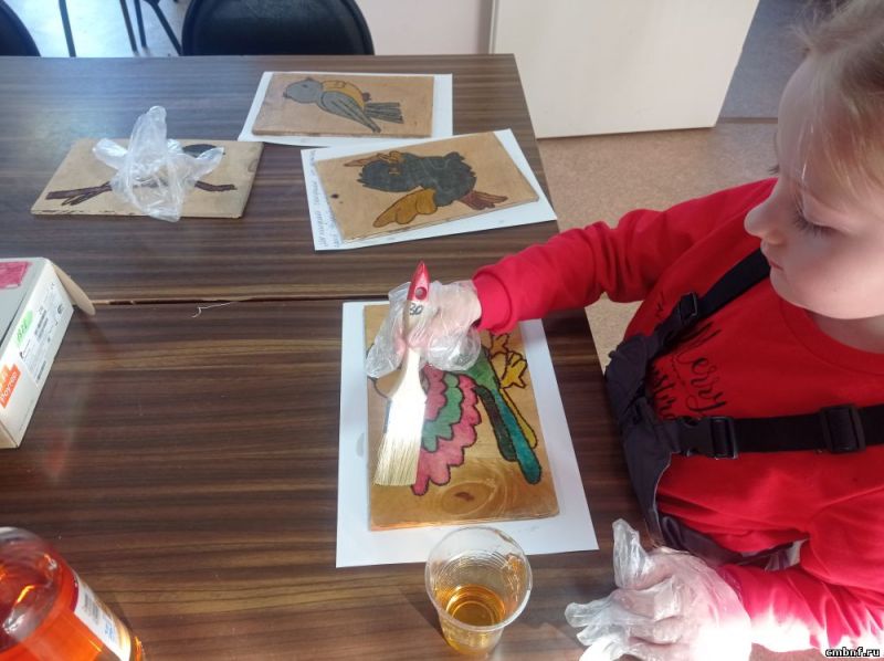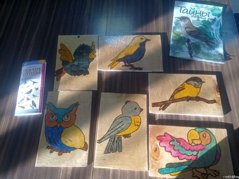 В библиотеке в д.Шустиково вместе с участниками клуба «В кругу друзей» прошел занимательный мастер-класс «Пернатая баталия». В начале мероприятия библиотекарь Крутина И.А. рассказала ребятам о птице года - домовом воробье. Это неунывающая, бойкая птица - постоянный спутник городского и сельского жителя уже несколько тысячелетий. Продолжилось мероприятие мастер-классом - выжиганием (пирографией) рисунков птиц по дереву. Ребята с удовольствием выжигали, раскрашивали и покрывали лаком свои рисунки на доске.